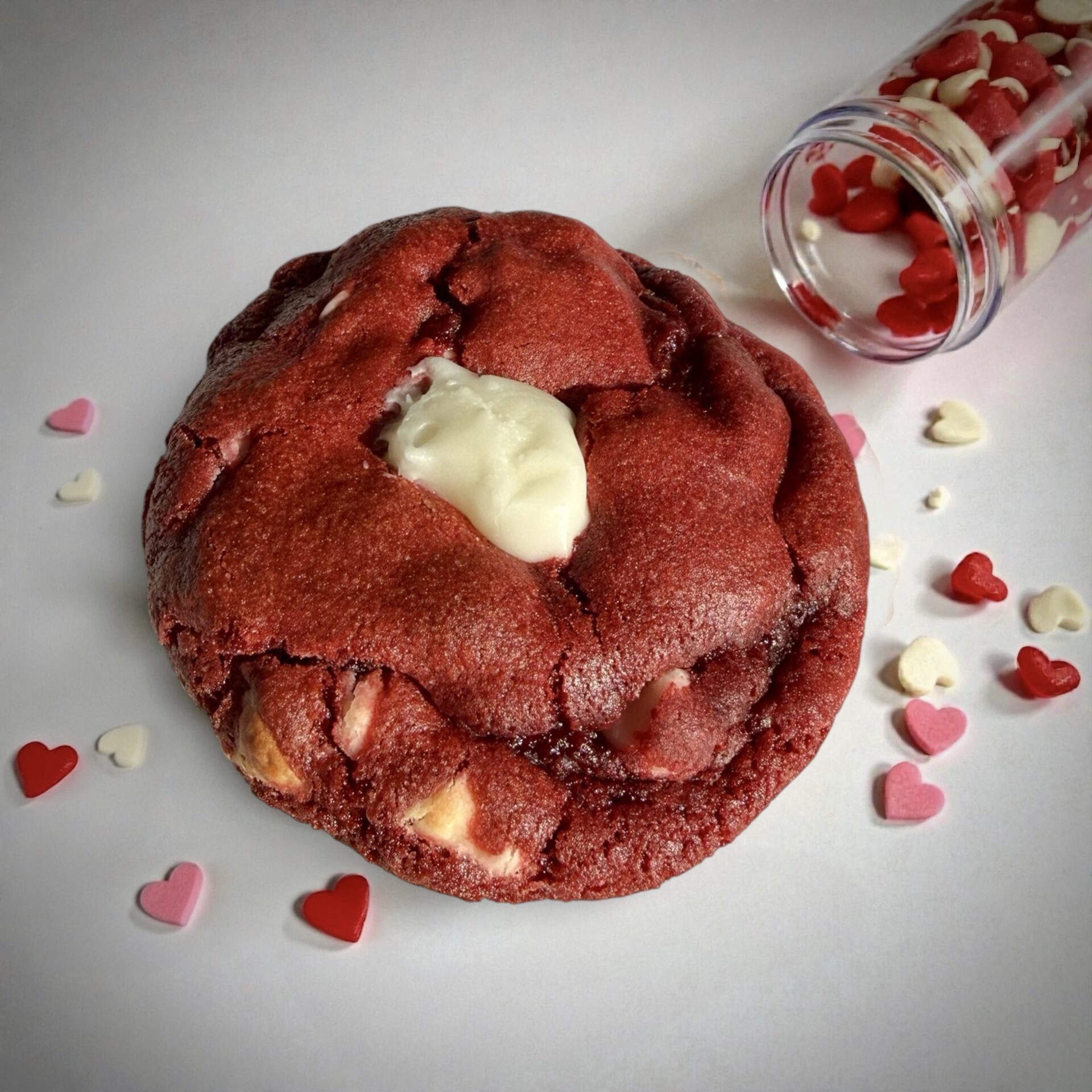 Laissez-vous séduire par la crème de la crème des biscuits. Ce biscuit rouge velours, délicatement garnis d’un glaçage onctueux au chocolat blanc et fromage à la crème est un mariage parfait entre la douceur du Red Velvet et la richesse du fromage. Parfait pour une Saint-Valentin pleine de douceur et de tentation!